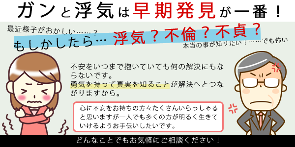 相談者さまの相談内容や個人的な情報が外部に漏れる事は一切ございません。調査終了後の調査資料も報告後、完全に処分いたします。